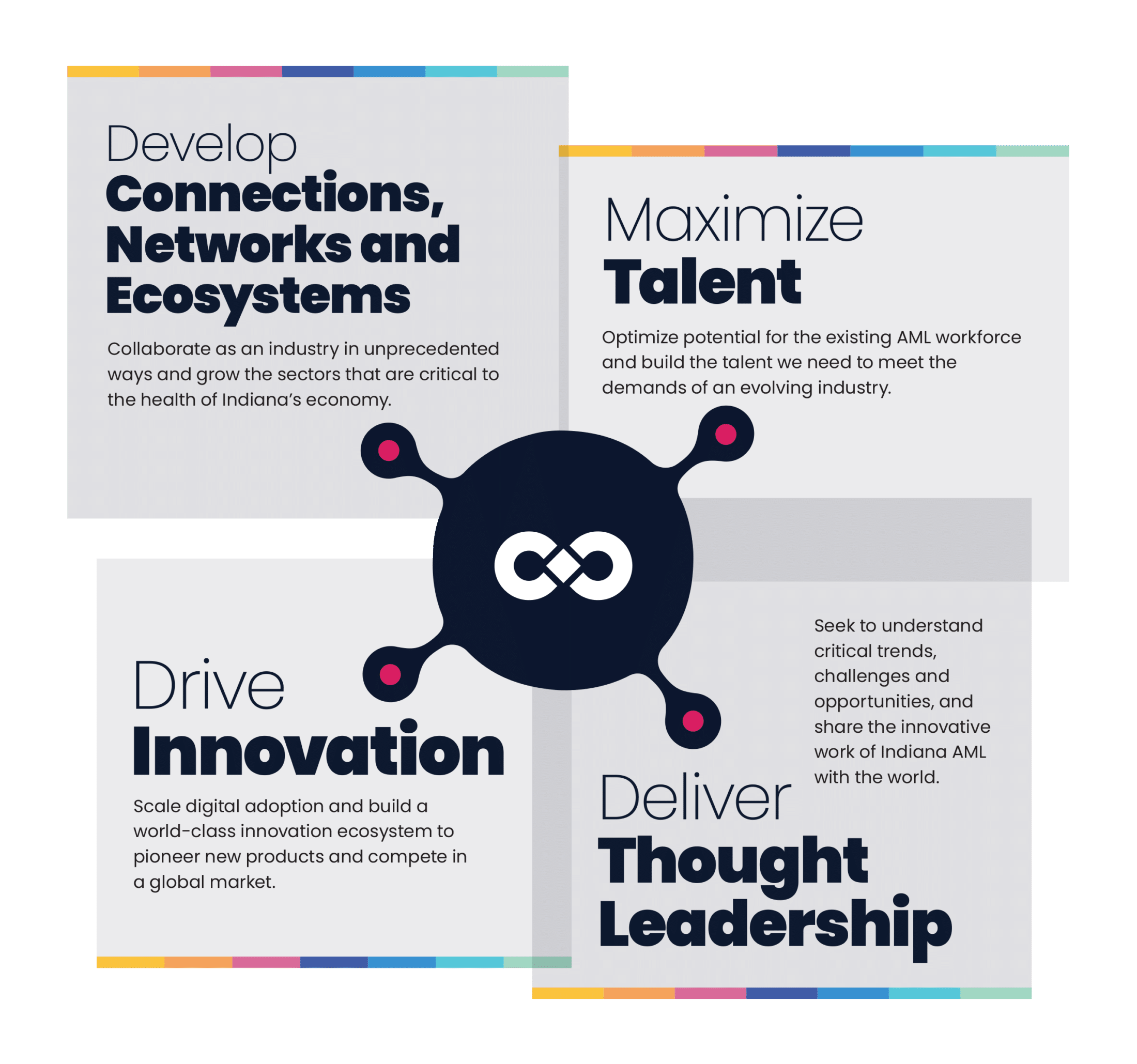 than 840,000 Hoosiers that ideate, create and deliver the products needed and used worldwide every day. However, Indiana’s leadership position in these industries is earned, not given. Strategic, long-term thinking has