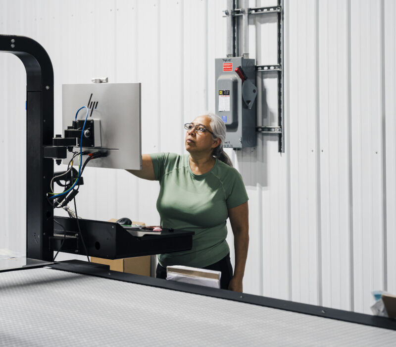 Innovation requires investment, and Innovative Designs’ Grant Writer Kenady Sullivan helped solve that part of the equation when she learned of the Manufacturing Readiness Grant and informed the team. “This was a big leap for us,” Chris added. “It took a lot of convincing on Jonathan’s part. He got me on board, and I started nudging Jason and together we convinced him that the MRG would significantly contribute to our return on investment.” That application resulted in the company’s 1st MRG, totaling $100,000 to assist with the CNC quilter sewing machines.
