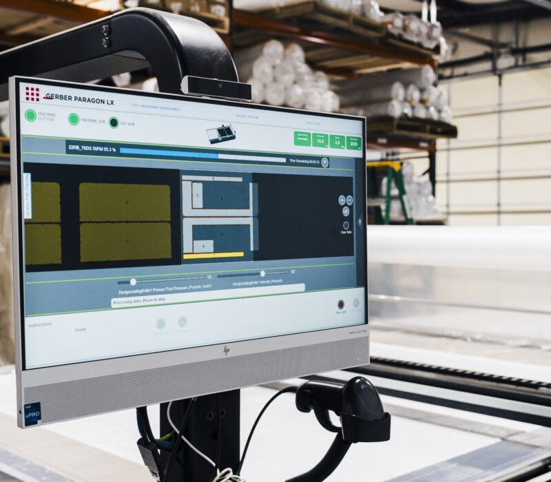 The first step on leadership’s automation roadmap was adding CNC ABM quilters, followed by a separate CNC cutting machine for wood and plastic materials. At the time, the company’s diamond quilt pattern required highly skilled hand sewers, making it difficult to keep up with and plan around anticipated production demands. Automation also meant the company would need more floor space to install machines, so leadership leased a larger building while on the search for the right equipment. But the path forward wasn’t clear at first – “We needed sewing robots,” Chris explained. “The only thing that keeps a robot from sewing is dexterity. I’m not saying we need to replace people,” he added. “I’m saying that when I need to get more production out, I need to be able to hit the dial and tell the machine to work a little bit faster. There are at least 5 times a day when I say, ‘We need another sewer.’ Well, good luck, because they’re like dinosaurs. You have to dig them out of the dirt now.”