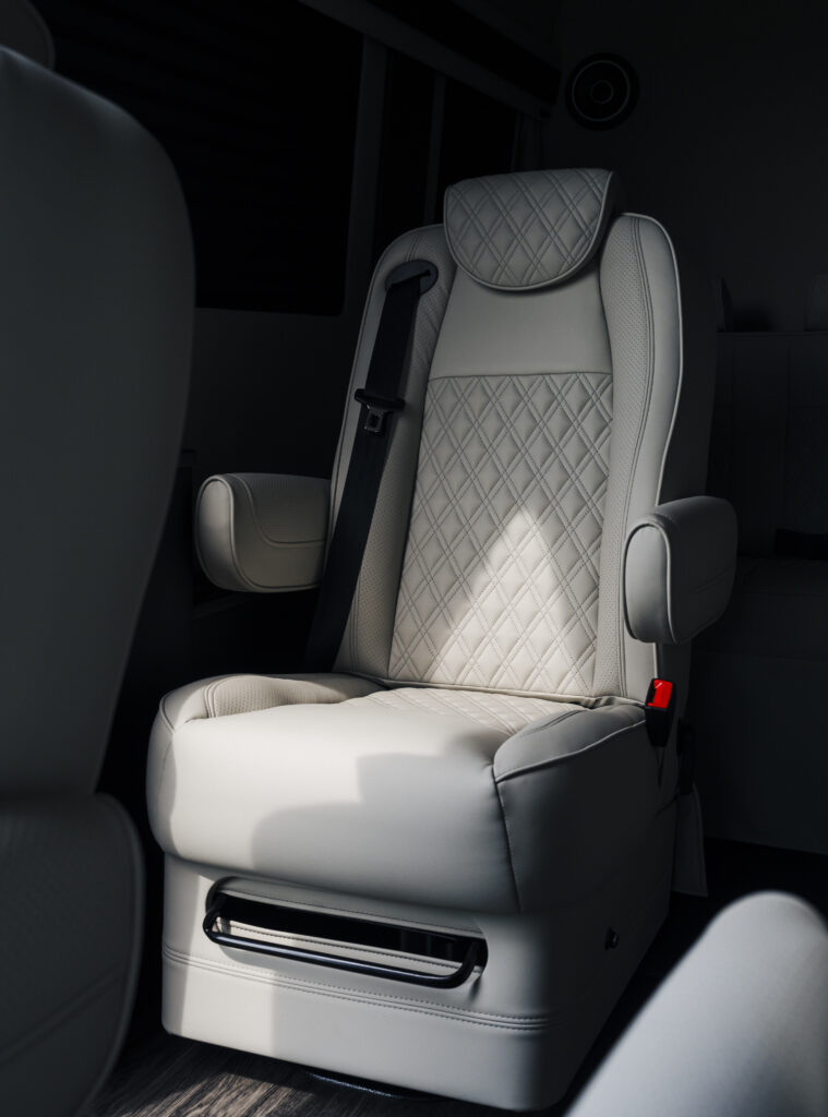 Once installed, the 2 quilters made an enormous difference in the Innovative plant. Sewing by hand had previously limited production to straight lines. CNC quilting machines allow the operator to execute far more complicated patterns. “The machine automatically rotates the material and does all these intricate shapes that a human just can’t do,” Jonathan explained, “It keeps us competitive because companies with more financial resources will buy them, and now with the MRG, we can, too.” They are more reliable than traditional hand sewing and allow a single trained worker to supervise multiple operations at once. “The work of 4 people can be done by 1 person who doesn’t know how to sew but knows how to control the machine.” The 1st new hire with the installation of the CNC quilters was an engineer who programs the pattern with menus that make them easy to use and operate.