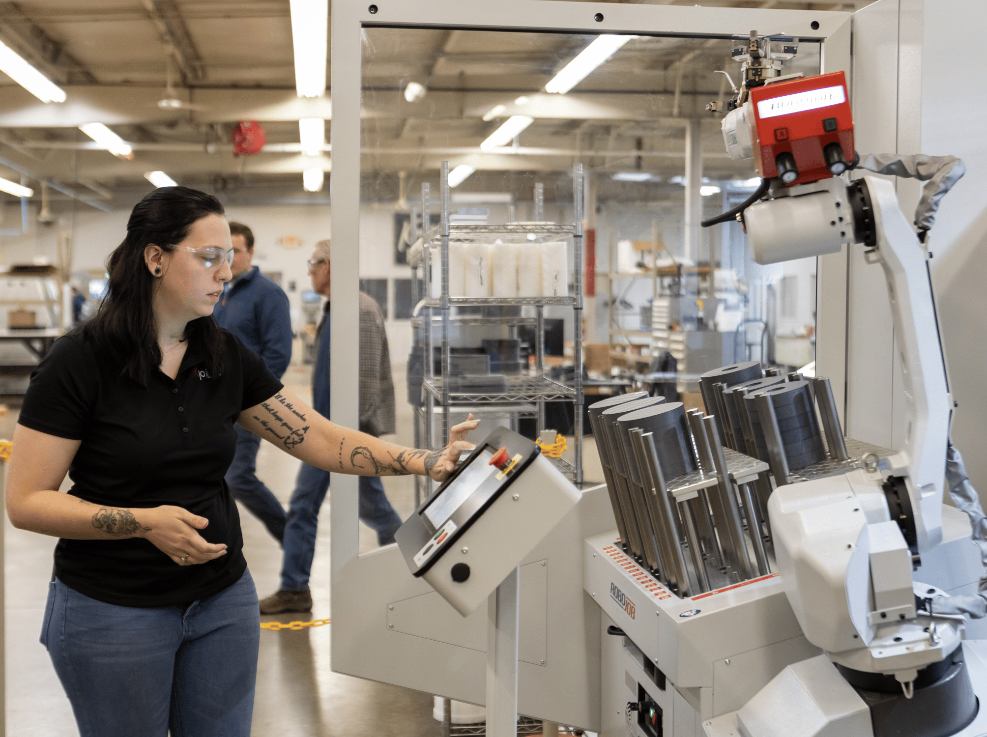 Konrady pursued two separate cobot projects with Fusion Robotics/RoboJob-USA; each requiring different solutions, but both following a similar implementation process. Once the COBOTs were delivered, Fusion Robotics/RoboJob-USA deployed service engineers to install the equipment and get it up to speed. The timeline to install and operationalize took 1 business week, and by the following week, the CNC lathes were up and running with the new technology. Leah Konrady said it was “seamless” with the technology integrator’s support.