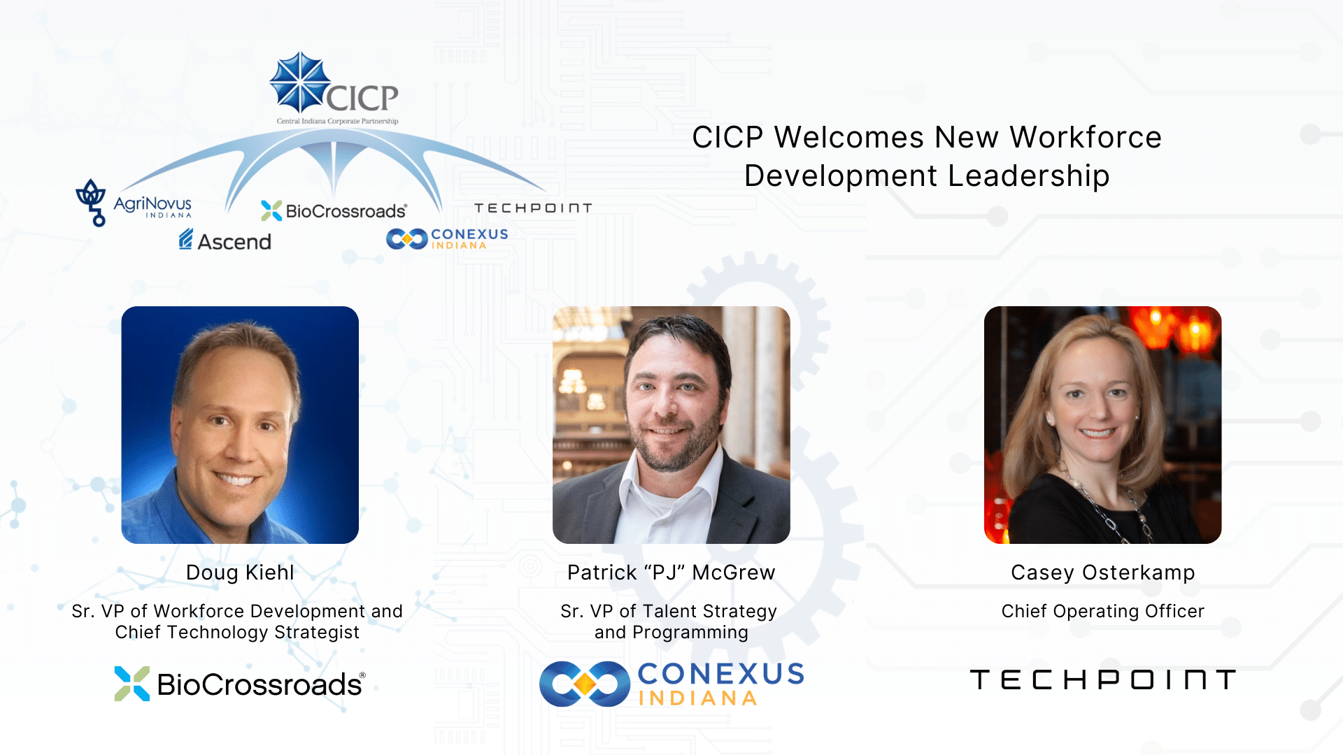 INDIANAPOLIS (Dec. 12, 2024) – The Central Indiana Corporate Partnership (CICP), alongside its branded initiatives BioCrossroads, Conexus Indiana and TechPoint, today announces the appointment of three senior leaders who will play pivotal roles in shaping the future of Indiana’s life sciences, advanced manufacturing and logistics and technology sectors.