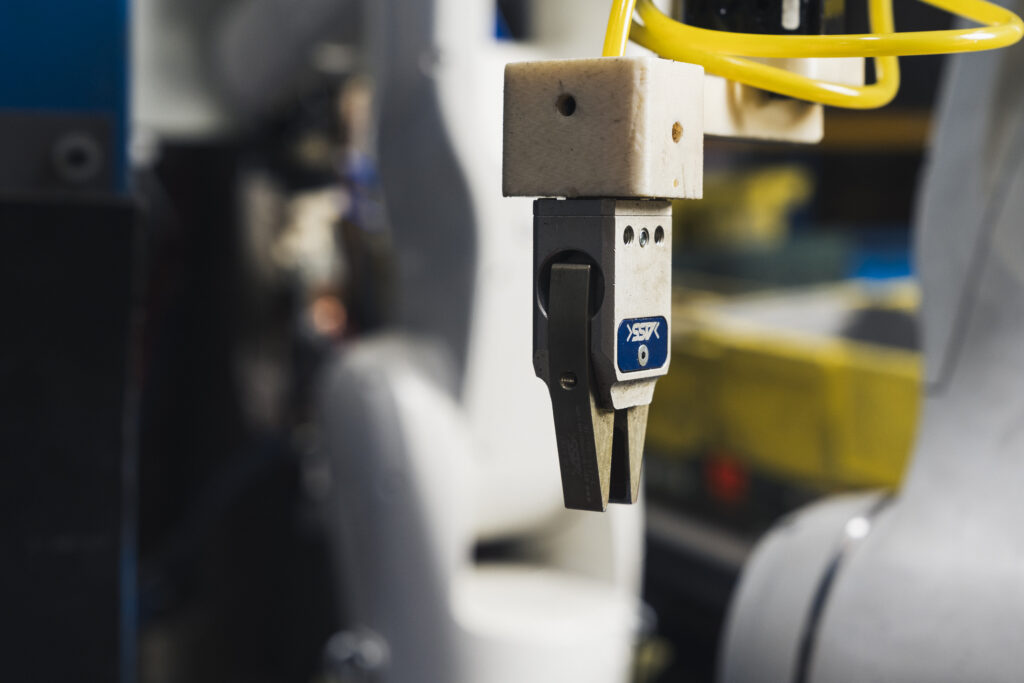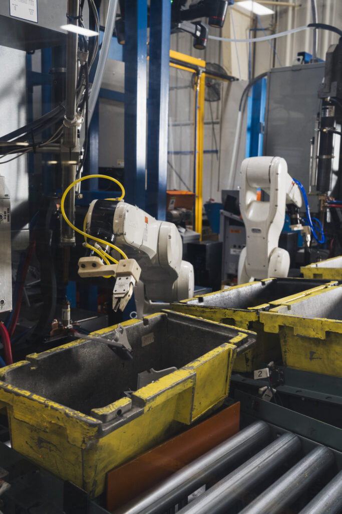 BTD’s high-volume manufacturing processes and part complexity called for innovative technology and a customized robotics solution. The goal was to deploy robots with integrated cameras to pick up parts from a random position out of a bin using a gripper tool. The technology investment enables BTD to increase its volume with the consistent quality required by its automotive customers. “Under the new bin picking process, a machine vision system tells a robot to verify that it is the correct part and in the correct orientation for the next step in manufacturing. The robots are also programmed to understand that, if the part is bad, it needs to be put in a separate bin,” Justin explained.