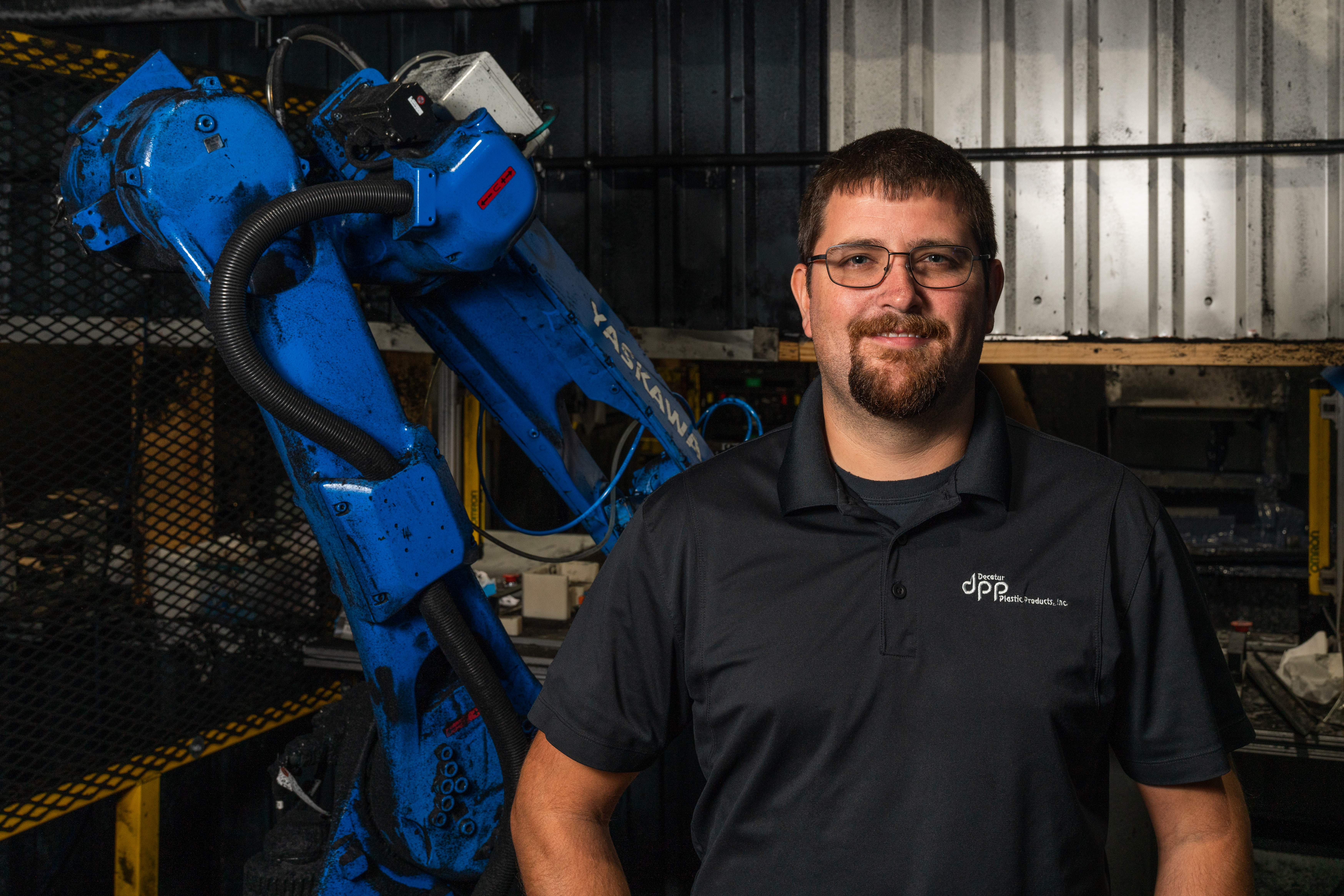 Plant Manager Kyle Grandin explained the efficiency aspect of the automated production line. “A robot is there 24 hours per day,” he said. “Of course, you have mechanical issues, but there’s a 100% guarantee the robot will execute its duties. It’s not that we’re trying to eliminate people; in fact, the robots provide labor continuity. The robots perform the tedious manual labor and free up human employees to do the human work. When you begin to become leaner and add automation, you’re able to upskill your workforce and provide a more competitive wage.”