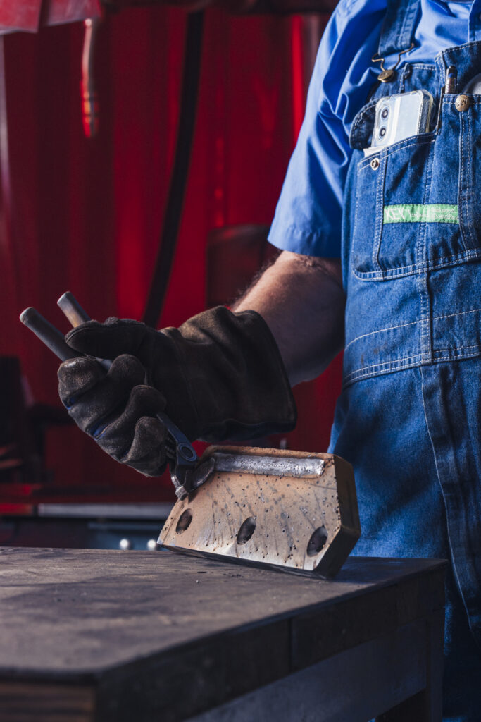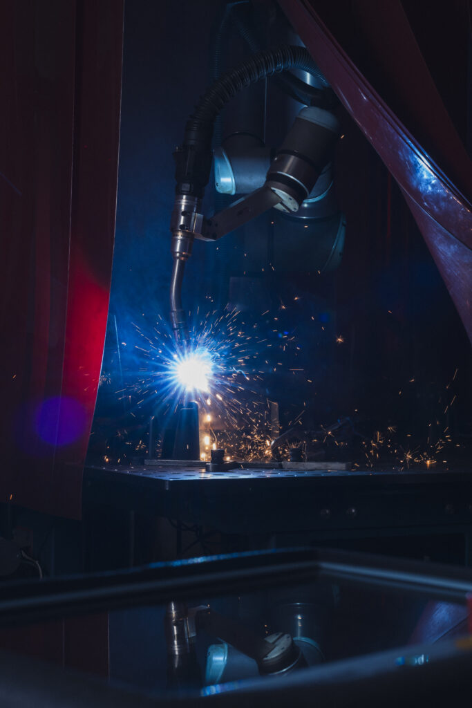 The new system drastically reduced part transit times through production runs. This new plasma table allows holes to be automatically beveled, rather than countersunk by a separate machine. In total, the table-cobot tandem does the work of four previously discrete machining steps all in one location with a smaller footprint. The once tedious and meticulous process of manually hard surfacing components is now completed by the cobot with improved consistency and accuracy.