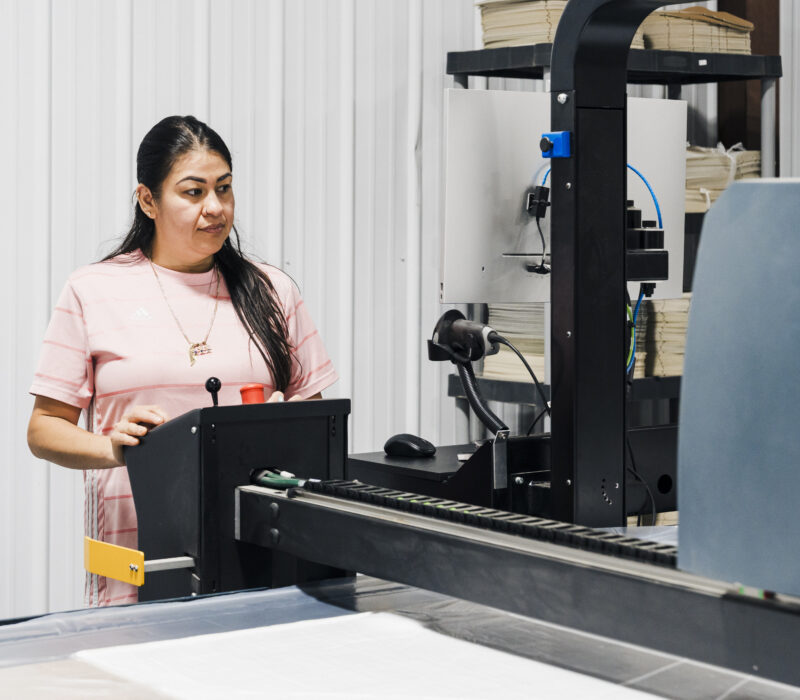 The first step on leadership’s automation roadmap was adding CNC ABM quilters, followed by a separate CNC cutting machine for wood and plastic materials. At the time, the company’s diamond quilt pattern required highly skilled hand sewers, making it difficult to keep up with and plan around anticipated production demands. Automation also meant the company would need more floor space to install machines, so leadership leased a larger building while on the search for the right equipment. But the path forward wasn’t clear at first – “We needed sewing robots,” Chris explained. “The only thing that keeps a robot from sewing is dexterity. I’m not saying we need to replace people,” he added. “I’m saying that when I need to get more production out, I need to be able to hit the dial and tell the machine to work a little bit faster. There are at least 5 times a day when I say, ‘We need another sewer.’ Well, good luck, because they’re like dinosaurs. You have to dig them out of the dirt now.”