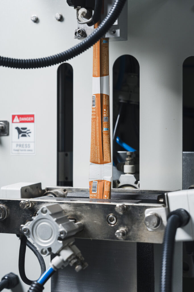 The packing equipment’s machine learning and recipe memory capabilities have enabled Monon Pax to quickly standardize the consistency of new products. “You need to order enough material to test and calibrate,” Lindsey warned. “That can be a very big deal for small clients, because it’s costly to send that extra powder. But without the extra material, we can’t calibrate to ensure consistency.” Even with sophisticated packing equipment, it takes thorough documentation and trials to dial in product tolerances. Monon Pax uses the fill and seal machine’s built-in memory to digitally track and save production settings for each client’s product as the process is refined. “I’ve discovered the value of machine learning. One of our clients uses our co-packing services to make 5 different products. We noticed that their lemon lime flavor flowed really well through the machine, but the mango peach was a little bit sticker and needed more adjustments to hit the same tolerances. But with more runs, the machine automatically makes calibration changes. We have a client that’s reordered from us multiple times with a stick pack weight tolerance between 6.51 to 6.8 grams. On the first runs, it was hard to get there. But as we continue to run it, we’re very close. Out of a run of 20,000 sticks, we might have less than 100 that are not in compliance. The machine is getting much more efficient with increasing runs.”