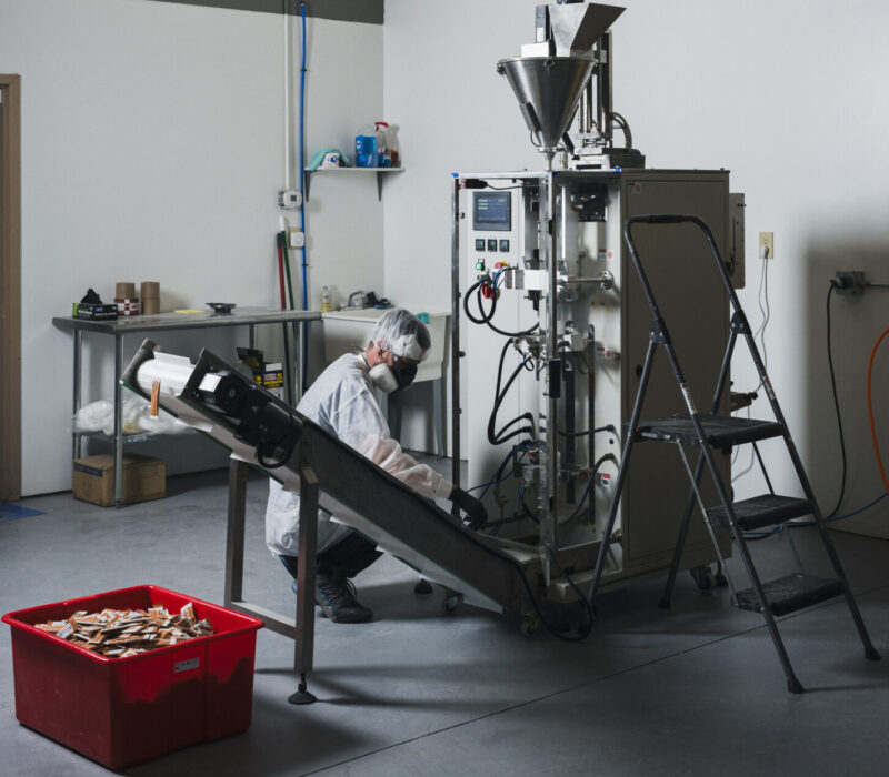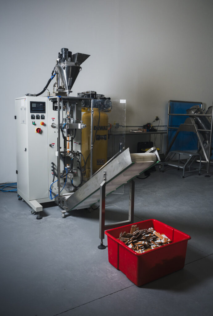 As her business grew, so did Lindsey’s entrepreneurial aptitude. She learned more about water-soluble hydration supplements on the market – think “Crystal Light” and similar favored additives – and saw an opportunity for more varied and healthier versions of these supplements from plant-based vitamins and minerals. “People often don’t like to drink plain water,” said Lindsey. “After some research, it became apparent that we don’t know where many ingredients are coming from in existing hydration supplements, so it felt like I could take that on personally and develop a healthier, more transparent product.” In addition to providing products to enhance her clients’ wellness journey, the supplement could also expand her customer base. Unfortunately, there were barriers to market entry for companies like Little Garden Foodies and similarly-sized wellness businesses. Delivering supplements requires developing their recipes as powders and packaging them in stick packs. Existing co-packing services primarily focus on larger quantity runs, making it difficult to begin small batch production without significant capital investment in the packaging equipment.