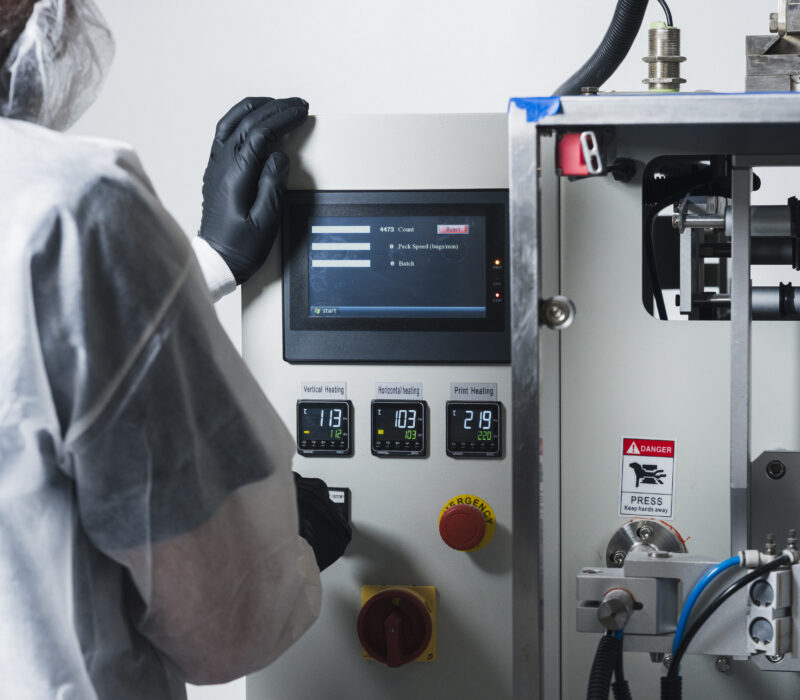 As she gained confidence in her business acumen, Lindsey began to research the ideal packaging machine for her use case, targeting something with a small footprint, positive reputation in industry and an ability package smaller quantities without overproducing – both for her own production goals and to serve as an effective co-packing partner for other small batch manufacturers looking to build their own brands. After visiting several trade shows and thorough market research, a specific machine stood out: the Model 55000 Quik-Stick Servo Auger Vertical Form Fill and Seal Machine. It was appropriately sized and capable of automatic operations, arriving on-site with a color touchscreen and Panasonic PLC machine controller for intuitive programming. These features offered a low barrier to entry for prospective manufacturers like Lindsey. Potential cobot support for automated material handling made this a sensible choice for her start-up manufacturing operation with room to grow.