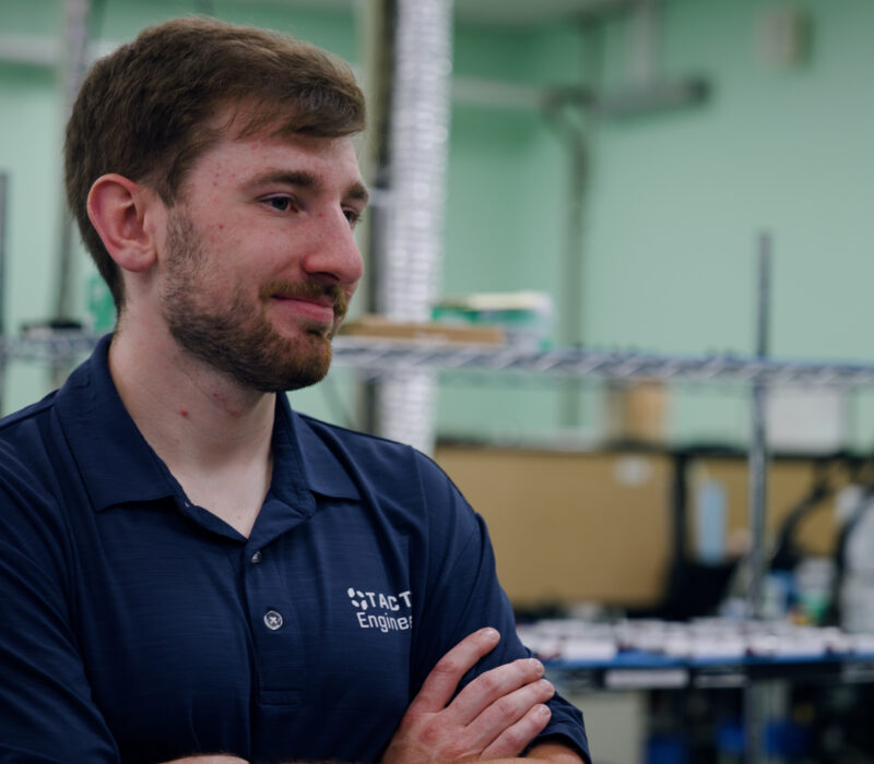 In early 2023, Tactile received a $200,000 MRG grant to expand and improve its then-operational production line for the braille modules in its Cadence tablet, and to build networked automation for their assembly. To expand manufacturing capacity, Tactile would duplicate existing automated robotic equipment and inspection systems; new cobots and IoT-linked systems would also be integrated to test the Cadence devices. The plan was to add new hires to augment Tactile’s engineering and technical staff — assisting with the development, implementation and maintenance of new equipment and software within Tactile’s Lafayette facility. Conveniently, Nick was looking for full-time employment in a hands-on product development role, and began working at Tactile as a Purdue senior.