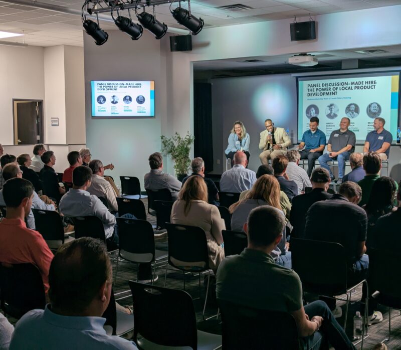 On Thursday, August 14 at Launch Fishers we hosted 100 hardtech innovators and heard from subject matter experts on the innovation theme, Made Here: The Power of Local Product Development. Industry partners from Amoon Spirits, Indesign, LLC, and Outside Source took the stage to share their insights on innovating a vodka bottle, something that hasn’t changed in over a decade.