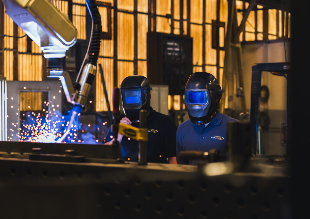 The next photograph is of robotic welding that Michael shows us from Soil-Max, manufacturers of agricultural water management systems.